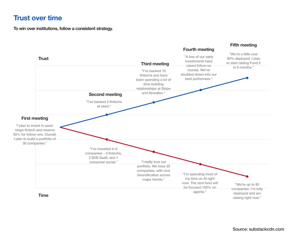 Scaling beyond those early believers requires a different kind of pitch. When you step into a room with an endowment, pension or fund-of-funds, you are asking them to trust your process, your discipline and your ability to run a fund like an institution.