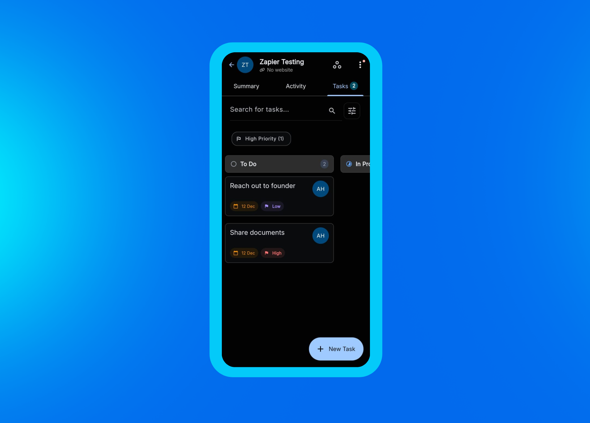- Use filters like Overdue, My Tasks and High Priority to focus on what needs attention